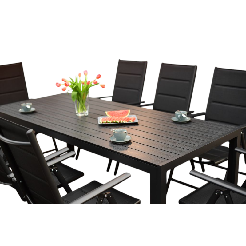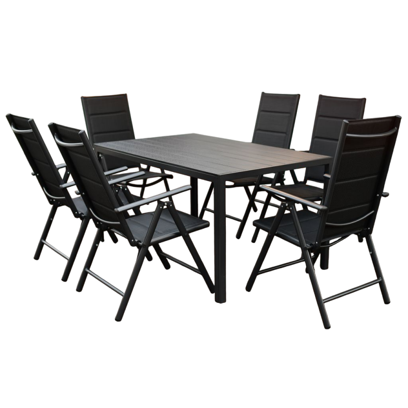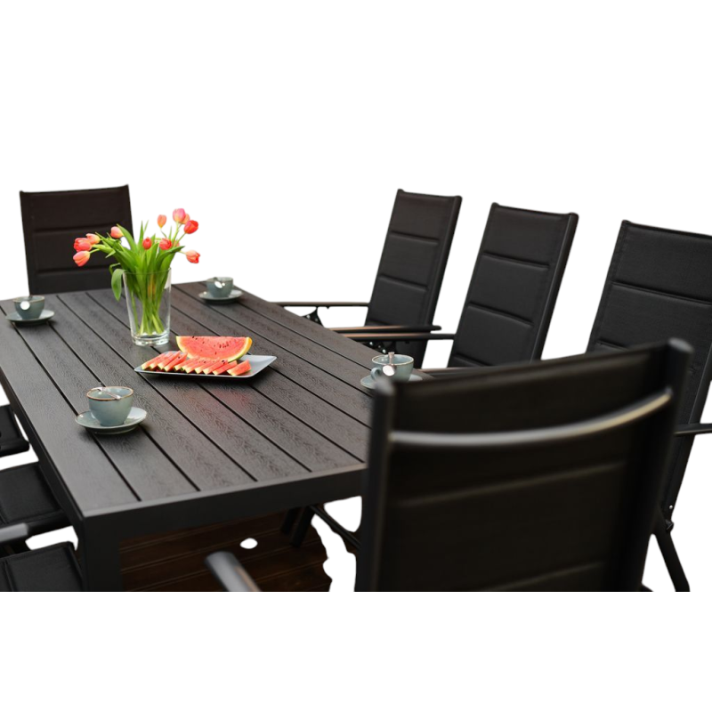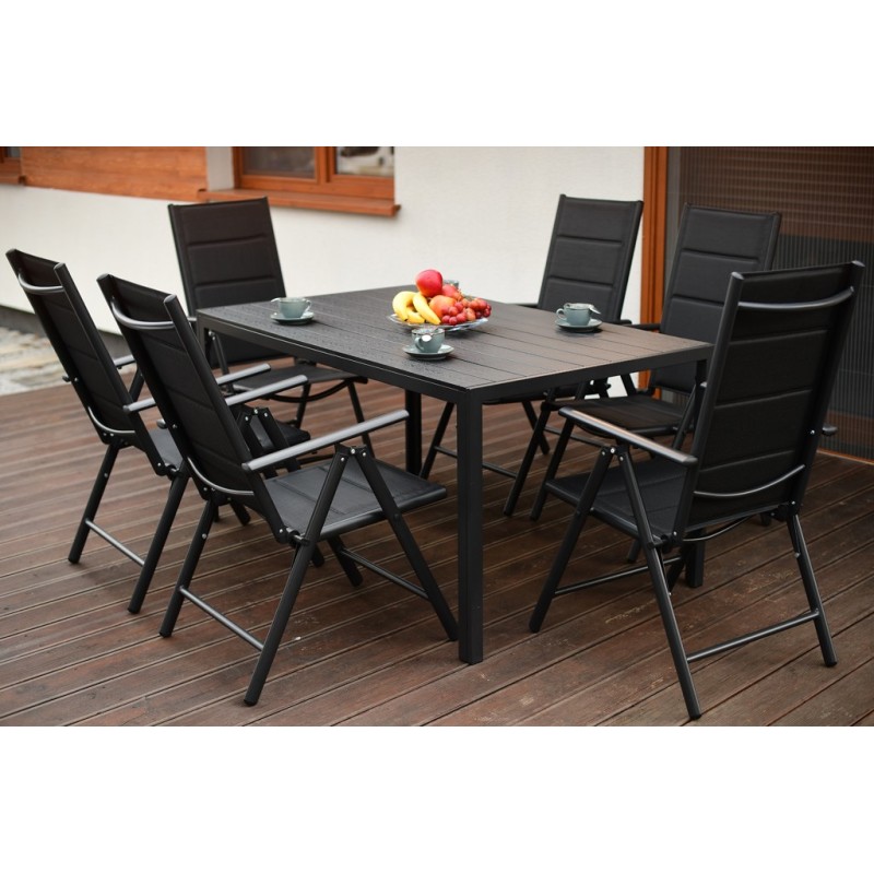 Meble Ogrodowe Aluminiowe Zestaw 6 osobowy 7 elementów Czarny Jadalniany