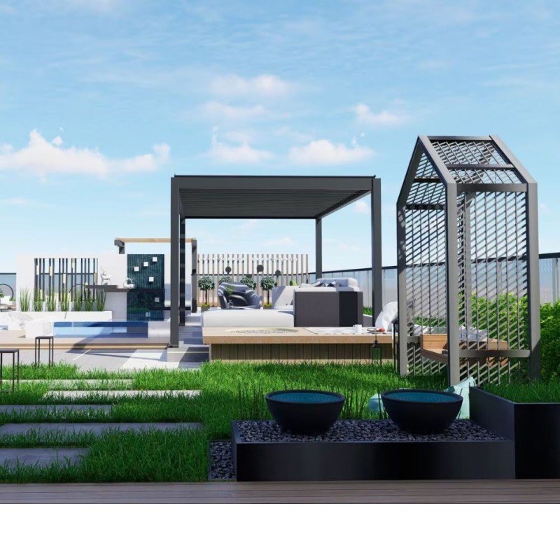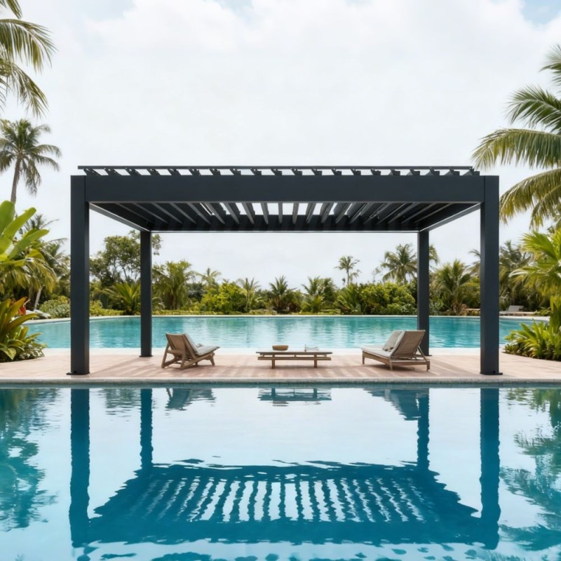 Nasze pergole zostały zaprojektowane z myślą o długowieczności. Konstrukcja z wysokogatunkowego aluminium zapewnia stabilność, odporność na korozję i łatwość w utrzymaniu, pozwalając cieszyć się pięknym miejscem wypoczynku przez lata.